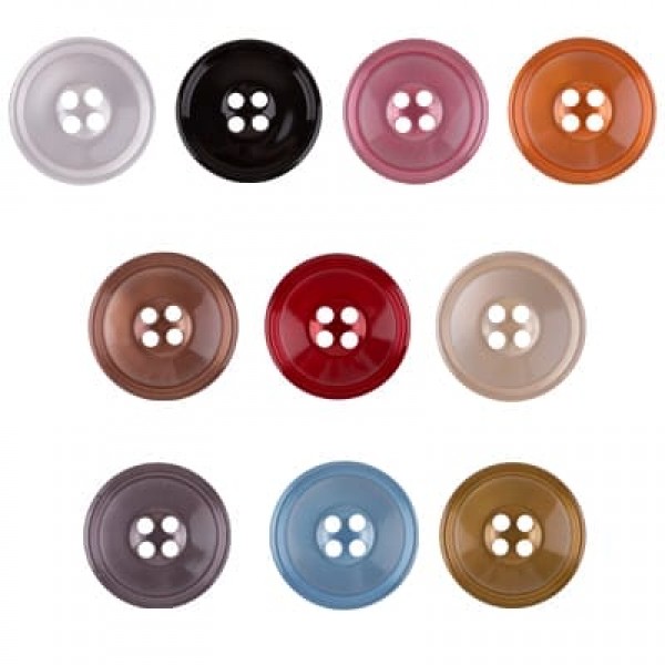 Пластиковая пуговица костюмная ТМ "Gamma", артикул: LQ 0013 круглой формы на четыре прокола, диаметром 15 мм.