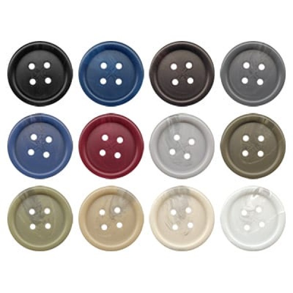 Пластиковая пуговица костюмная ТМ "Gamma", артикул: RM 0018, круглая на четыре прокола, диаметром 23 мм.