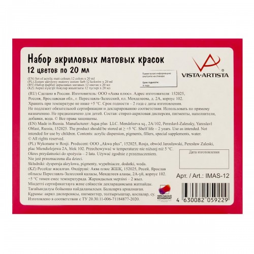 Краска акриловая "VISTA-ARTISTA" idea для декора матовая, набор IMAS-12 12 цв. х 20 мл .