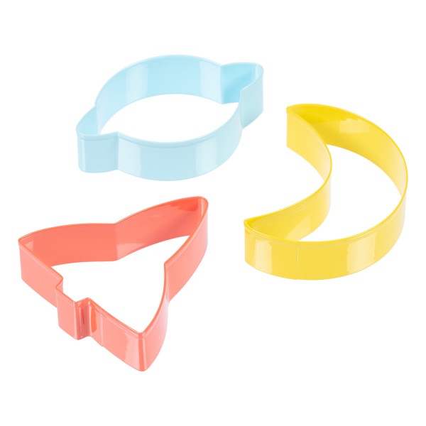 Применяется для изготовления декора из мастики, марципана, домашнего печенья из песочного и другого теста, позволяющие быстро украсить любое кондитерское изделие. Инструкция по использованию: 1.Раскатать мастику, марципан или тесто на специальном покрытии, при работе с тестом, во избежание прилипания, рекомендуем использовать муку . 2. Вырезать мотив, нажимая на всю поверхность вырубки. 3. Выдавить мотив на плоскую поверхность. Размеры: Планета: 7.8 * 5.1 * 2 см Ракета: 7 * 6.6 * 2 см Месяц: 7 * 6* 2 см Вырубки изготовлены из нержавеющей стали марки AISI 430, класс - сталь коррозионностойкая жаропрочная. Благодаря плотному материалу они не деформируются и отлично держат форму. ТОВАР СЕРТИФИЦИРОВАН. Безопасно для контакта с пищевыми продуктами.