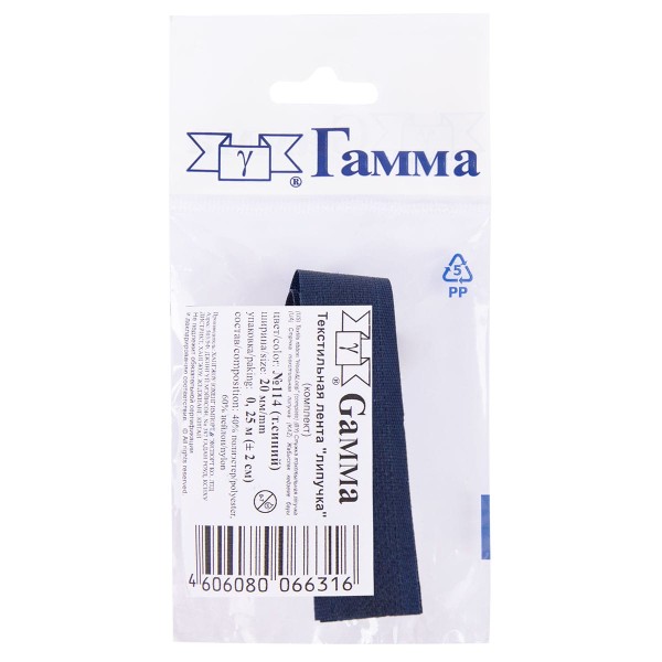 Липучка "Gamma" 20 мм LG-20 ФАСОВКА 5 x 0.25 м №114 т.синий