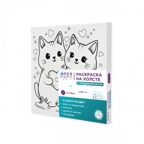 ФРЕЯ" RB/S-004 Раскраски на холсте с подрамником 15 х 15 см Влюбленные котики