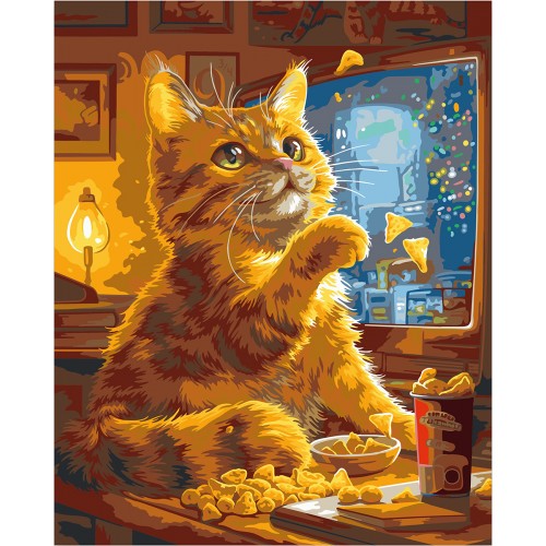 ФРЕЯ" PNB/PLC-329 Набор для раскрашивания по номерам ( цветной холст ) 50 х 40 см Котик у телевизора