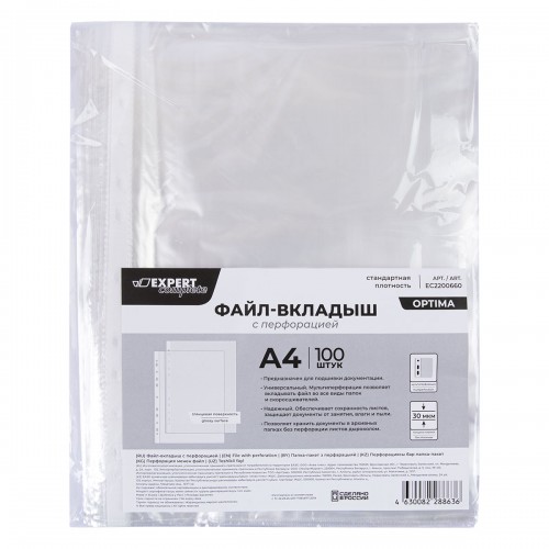 Expert Complete" Файл-вкладыш OPTIMA/ОПТИМА A4 100 шт. 30 мкм глянцевый прозрачный EC2200660