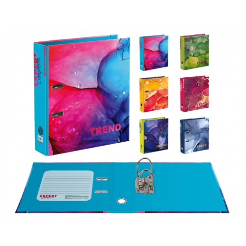 Папка-регистратор ТМ "Expert Complete" серия Trend, A4. Изготовлена из плотного картона, обеспечивающего жёсткость и правильную геометрию изделия. Обложка из глянцево-ламинированной бумаги надежно защищает папку от износа при интенсивной работе. Яркий привлекательный дизайн позволит разнообразить любой интерьер. Хромированная фурнитура, не подверженная коррозии. Специальные прорези фиксируют папку в закрытом положении, предохраняя от непроизвольного открывания. Кольцо-захват на торце папки для удобства извлечения с полки. Поле для записей на форзаце. Вид арочного механизма: несъемный Вмещает до 500 листов стандартной плотности.