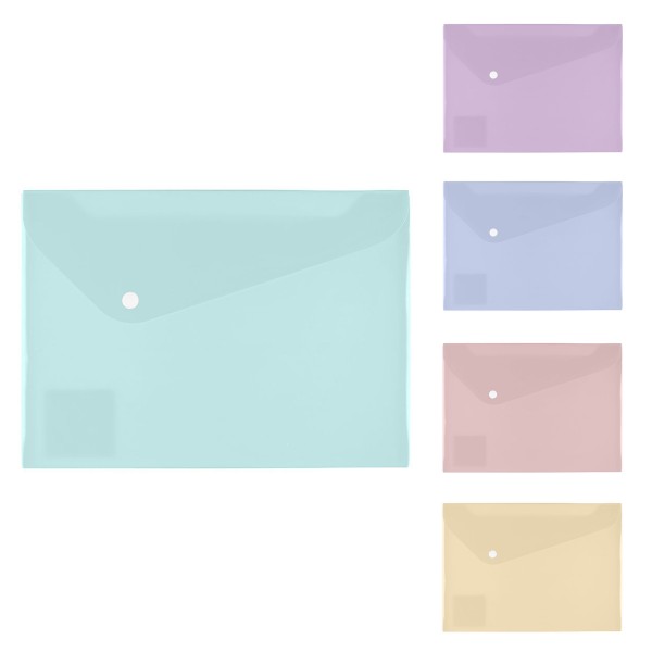 Папка-конверт Expert Complete серия Trend. Представлена в 4 пастельных тонах. Формат А5. Закрывается на кнопку. Подходит как для хранения, так и транспортировки документов, предохраняя их от загрязнения и смятия. Вмещает до 110 листов. Глянцевая поверхность пластика с тектурой диагональ. Допустимое отклонение толщины пластика: ±10\%