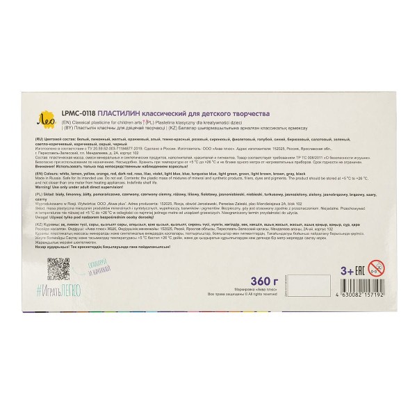 "Лео" "Играй" Пластилин классический LPMC-0118 360 г ( в картонной упаковке ) 18 цв. .