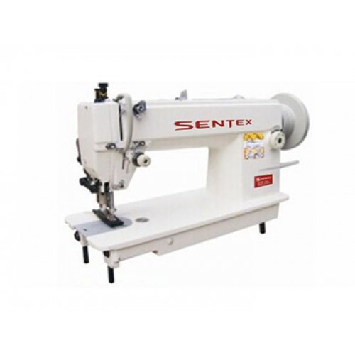 SENTEX ST-0303 - 1-игольная машина челночного стежка для трудно транспортируемых материалов с фрикционным мотором. Продвижение материала осуществляется с помощью нижнего (рейки) и верхнего (шагающей лапки) транспортеров. Машина оснащена автоматической системой подачи масла и вращающимся челноком. Применяется для пошива изделий из плотных материалов (искусственная кожа, парусин, джинсовой ткани) подходит как для пошива одежды, так и пошива обивки мебели, сумок.