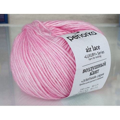 Пряжа "Воздушный кант". ТМ Пехорский текстиль. Для вязания предметов одежды и аксессуаров. Сезон: Все сезоны. Новинка из "Элитной" серии. Состав из мериносовой шерсти с вплетением бамбукового волокна придает пряже как тепло, так и мягкость, делает нить чрезвычайно нежной. Подойдет для вязания детских вещей и людей с чувствительной кожей. Как подсказывает название, в основе пряжи шнурочек – кант. Он состоит из крепеньких, замысловато переплетенных звеньев изящной цепочки. Так, из тончайших бамбуковых ниточек создается основа пряжи. Шнурочек внутри полый, и эта полость заполняется нежнейшими, невероятно легкими волокнами мериносовой шерсти. Нить-основа и ее пуховое содержимое максимально подходят друг другу по цвету. Поэтому готовые клубочки – это чистота заданного цвета, слегка припудренная естественным пухом суперэлитного мериноса. Пряжа получилась необыкновенной! Из-за того, что пряжа - ОЧЕНЬ гигроскопичный товар, она легко набирает и легко отдаёт влагу. Указанный на мотке вес - это так называемый "кондиционный" вес. Нормативная влажность пряжи - 18,25\%, а реальная обычно бывает меньше - 14-15\%. Поэтому, при взвешивании пряжи в "обычных" комнатных условиях, данные по весу могут отличаться от указанных на мотке. Контрольное взвешивание, при определенной влажности и температуре, должно проводиться только в спец. лабораториях. Претензии по весу принимаются только при наличии официального заключения лабораторий, либо при очевидной разнице - более 30\%. Тип пряжи: Классическая Цветовая палитра: однотонные цвета Толщина нити: средняя Длина нити: 150 м Вес: 50 г Состав: 35\% мериносовая шерсть, 65\% бамбук Рекомендуемый диаметр спиц для пряжи - 4.0-4.5 мм, крючка - 3.5-4.5 мм Примечание: цвет товара может отличаться от цвета фото