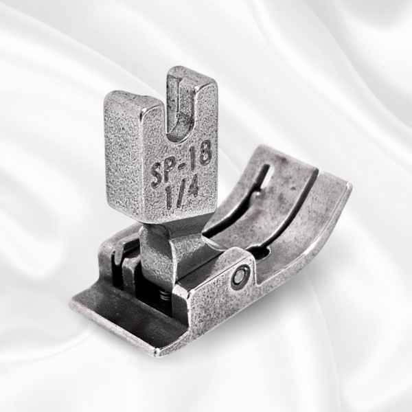 Лапка SP-18 для отделочных строчек с подпружиненным бортиком. Предназначена для всех видов материалов. как для тяжелых материалов. типа джинса. так и для легких трикотажных материалов. например кулирка. Устанавливаются на одноигольные прямострочные промышленные швейные машины с нижним продвижением.