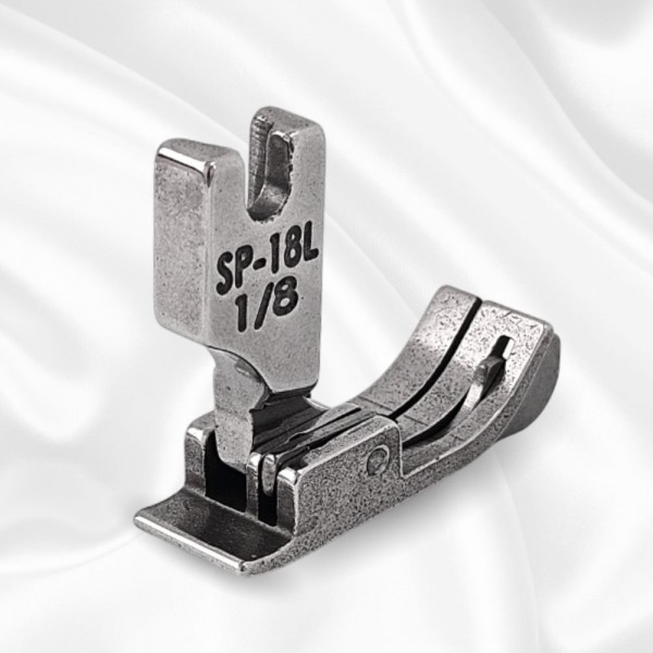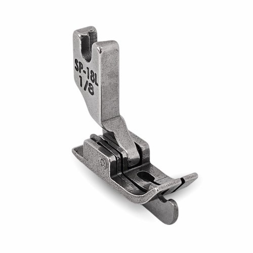 Лапка SP-18 для отделочных строчек с подпружиненным бортиком. Предназначена для всех видов материалов. как для тяжелых материалов. типа джинса. так и для легких трикотажных материалов. например кулирка. Устанавливаются на одноигольные прямострочные промышленные швейные машины с нижним продвижением.