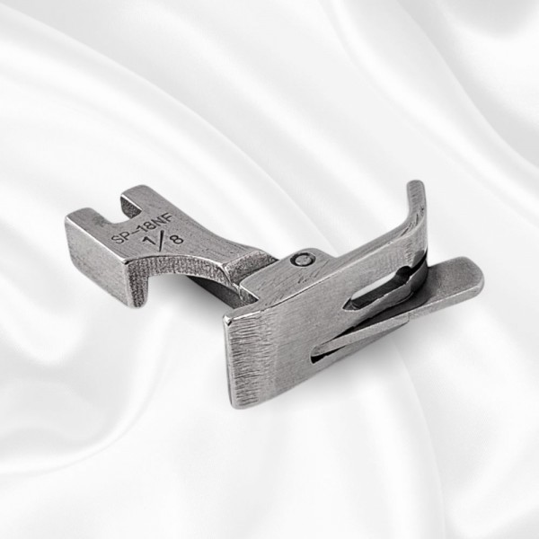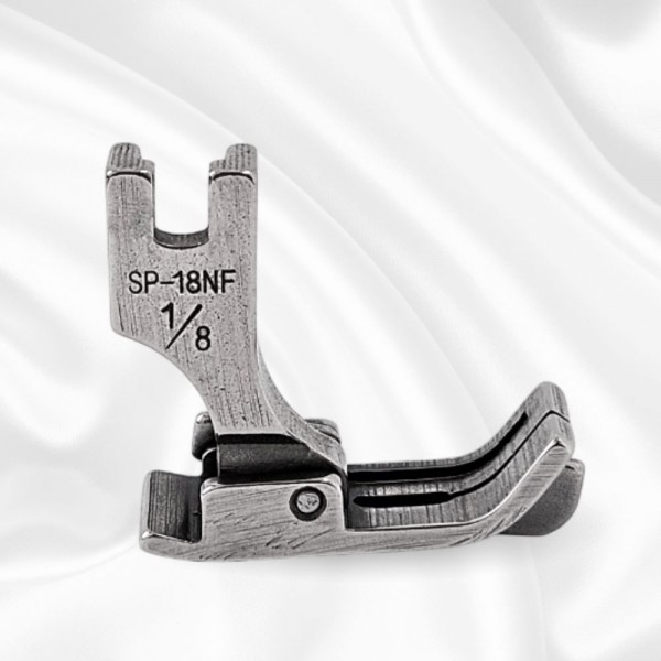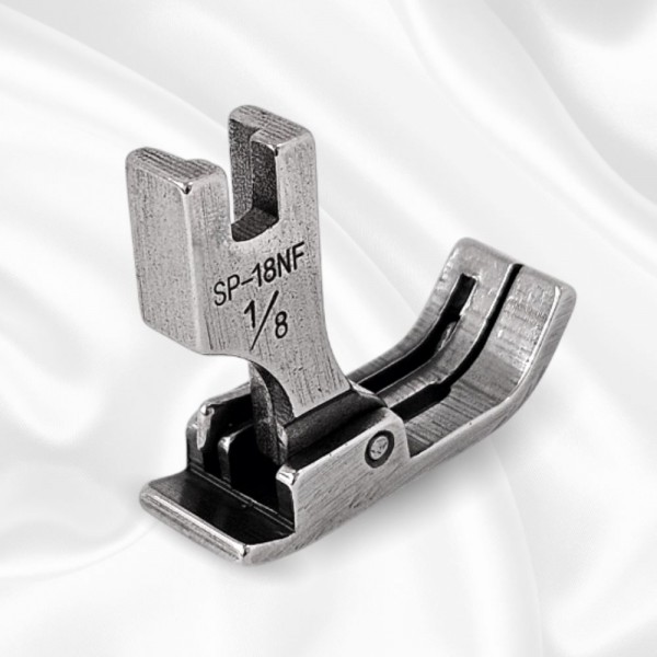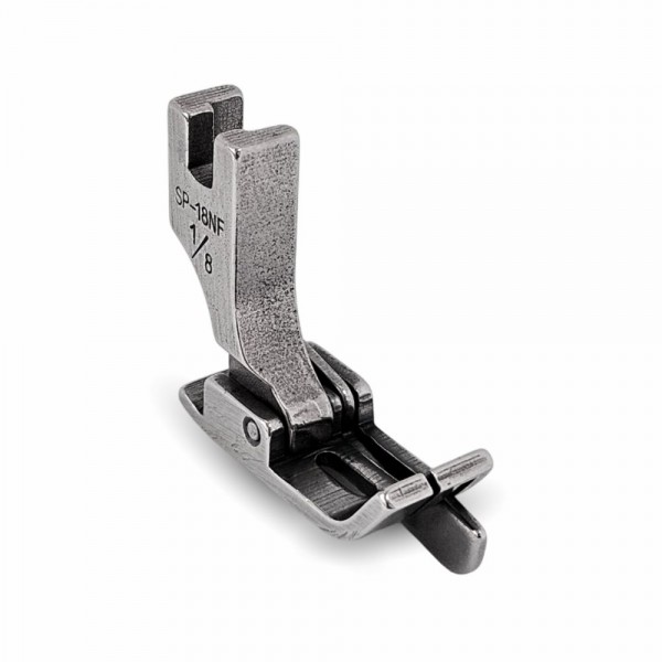 Лапка SP-18 для отделочных строчек с подпружиненным бортиком. Предназначена для всех видов материалов. как для тяжелых материалов. типа джинса. так и для легких трикотажных материалов. например кулирка. Устанавливаются на одноигольные прямострочные промышленные швейные машины с нижним продвижением.