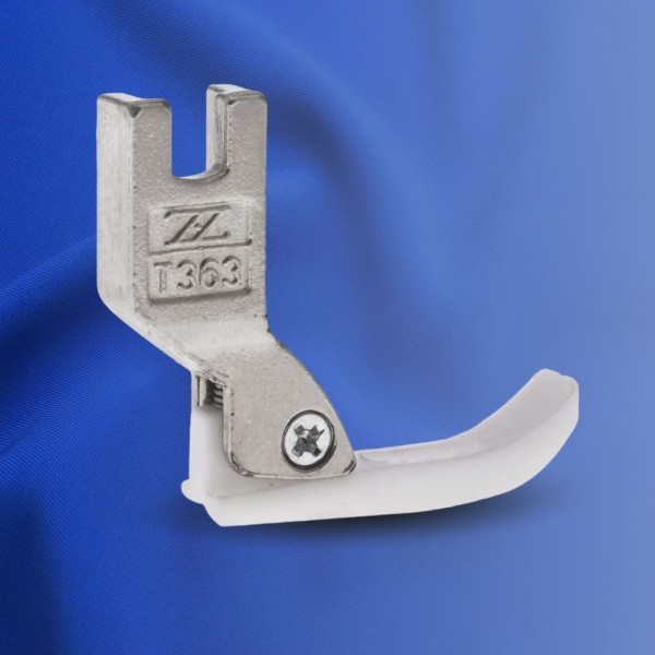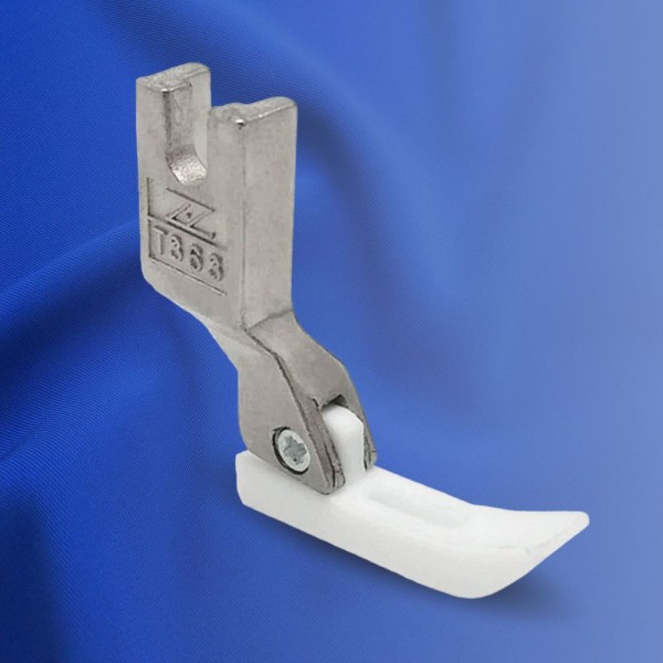 Лапка тефлоновая узкая для промышленных швейных машин. Предназначена для вшивания молнии. ширина подошвы - 6 мм.