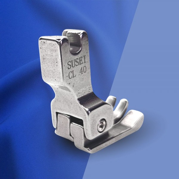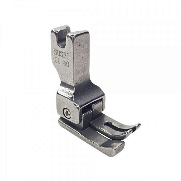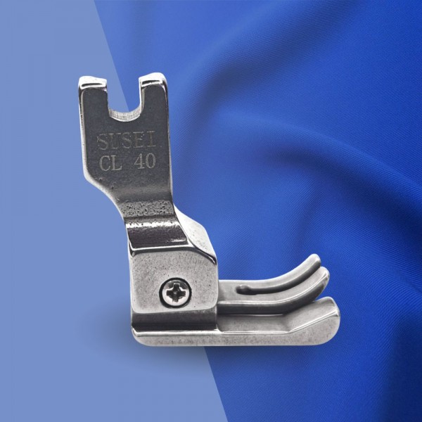 Лапка CL левосторонняя для отстрочки по краю. Используется на промышленной прямострочной швейной машине с нижним продвижением ткани. Прижимная лапка CL имеет специальную подошву. состоящую из двух отдельных рожков разной высоты. У компенсационной лапки CL подпружинен правый рожок. который играет роль бортика. что ограничивает край материала.