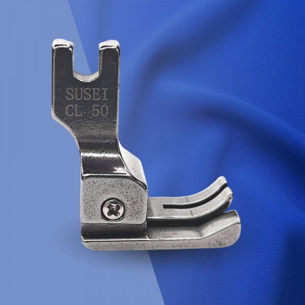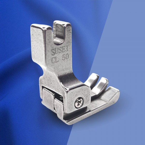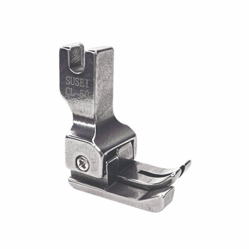 Лапка CL левосторонняя для отстрочки по краю. Используется на промышленной прямострочной швейной машине с нижним продвижением ткани. Прижимная лапка CL имеет специальную подошву. состоящую из двух отдельных рожков разной высоты. У компенсационной лапки CL подпружинен правый рожок. который играет роль бортика. что ограничивает край материала.
