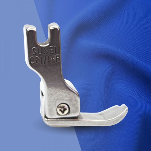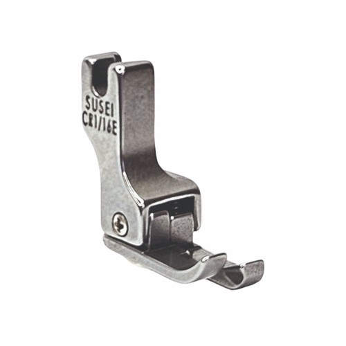 Лапка CR правосторонняя для отстрочки по краю. Ипользуетя на промышленной прямострочной швейной машине с нижним продвижением ткани. Прижимная лапка CR имеет специальную подошву. состоящую из двух отдельных рожков разной высоты. У компенсационной лапки CR подпружинен правый рожок. который играет роль бортика. что ограничивает край материала. Обратите. пожалуйста. внимание. что правосторонняя лапка для отстрочки доступна в разных размерах.