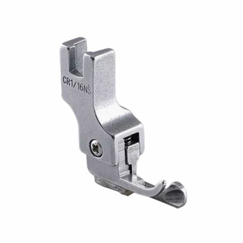 Лапка CR правосторонняя узкая для отстрочки по краю. Ипользуетя на промышленной прямострочной швейной машине с нижним продвижением ткани. Прижимная лапка CR имеет специальную подошву. состоящую из двух отдельных рожков разной высоты. У компенсационной лапки CR подпружинен правый рожок. который играет роль бортика. что ограничивает край материала. Обратите. пожалуйста. внимание. что правосторонняя лапка для отстрочки доступна в разных размерах.