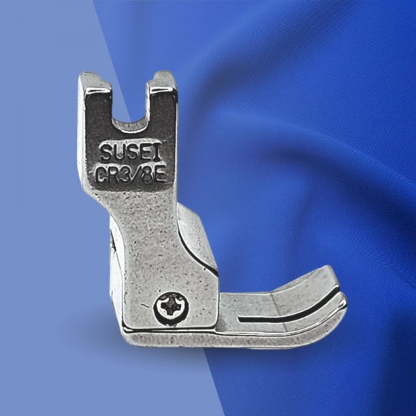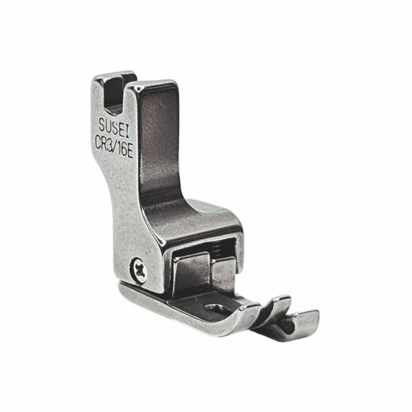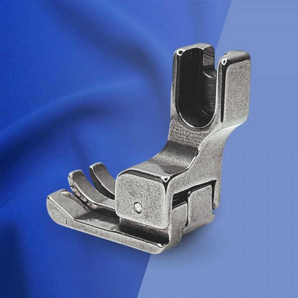 Лапка CR правосторонняя для отстрочки по краю. Ипользуетя на промышленной прямострочной швейной машине с нижним продвижением ткани. Прижимная лапка CR имеет специальную подошву. состоящую из двух отдельных рожков разной высоты. У компенсационной лапки CR подпружинен правый рожок. который играет роль бортика. что ограничивает край материала. Обратите. пожалуйста. внимание. что правосторонняя лапка для отстрочки доступна в разных размерах.