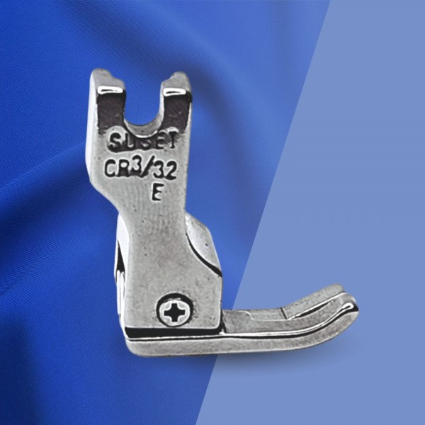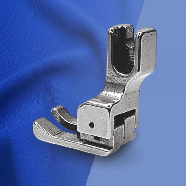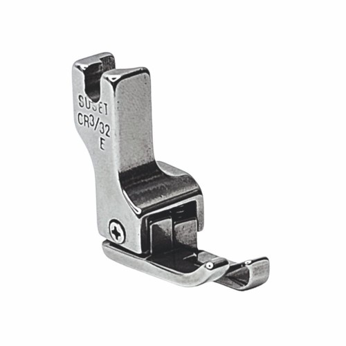 Лапка CR правосторонняя для отстрочки по краю. Ипользуетя на промышленной прямострочной швейной машине с нижним продвижением ткани. Прижимная лапка CR имеет специальную подошву. состоящую из двух отдельных рожков разной высоты. У компенсационной лапки CR подпружинен правый рожок. который играет роль бортика. что ограничивает край материала. Обратите. пожалуйста. внимание. что правосторонняя лапка для отстрочки доступна в разных размерах.