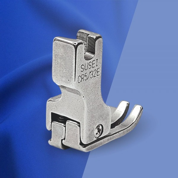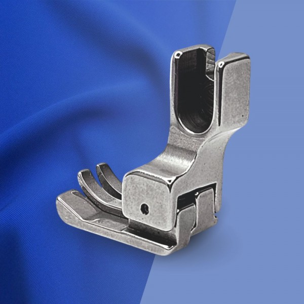 Лапка CR правосторонняя для отстрочки по краю. Ипользуетя на промышленной прямострочной швейной машине с нижним продвижением ткани. Прижимная лапка CR имеет специальную подошву. состоящую из двух отдельных рожков разной высоты. У компенсационной лапки CR подпружинен правый рожок. который играет роль бортика. что ограничивает край материала. Обратите. пожалуйста. внимание. что правосторонняя лапка для отстрочки доступна в разных размерах.