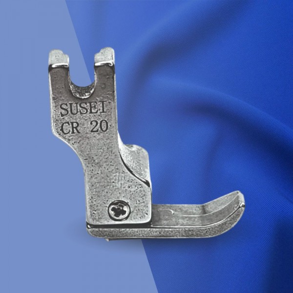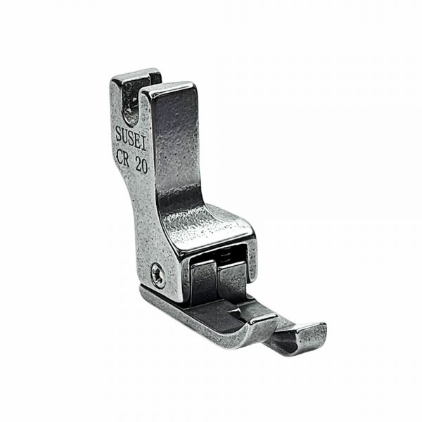 Лапка CR правосторонняя для отстрочки по краю. Ипользуетя на промышленной прямострочной швейной машине с нижним продвижением ткани. Прижимная лапка CR имеет специальную подошву. состоящую из двух отдельных рожков разной высоты. У компенсационной лапки CR подпружинен правый рожок. который играет роль бортика. что ограничивает край материала. Обратите. пожалуйста. внимание. что правосторонняя лапка для отстрочки доступна в разных размерах.
