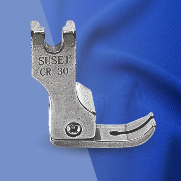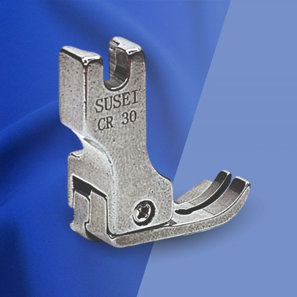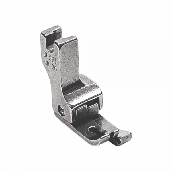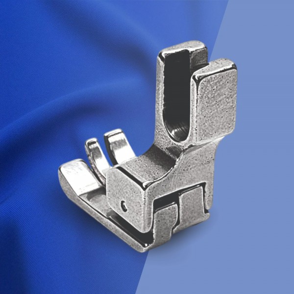 Лапка CR правосторонняя для отстрочки по краю. Ипользуетя на промышленной прямострочной швейной машине с нижним продвижением ткани. Прижимная лапка CR имеет специальную подошву. состоящую из двух отдельных рожков разной высоты. У компенсационной лапки CR подпружинен правый рожок. который играет роль бортика. что ограничивает край материала. Обратите. пожалуйста. внимание. что правосторонняя лапка для отстрочки доступна в разных размерах.