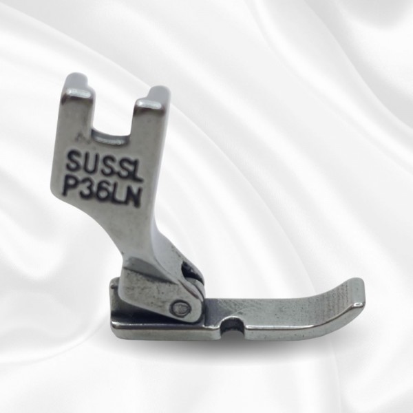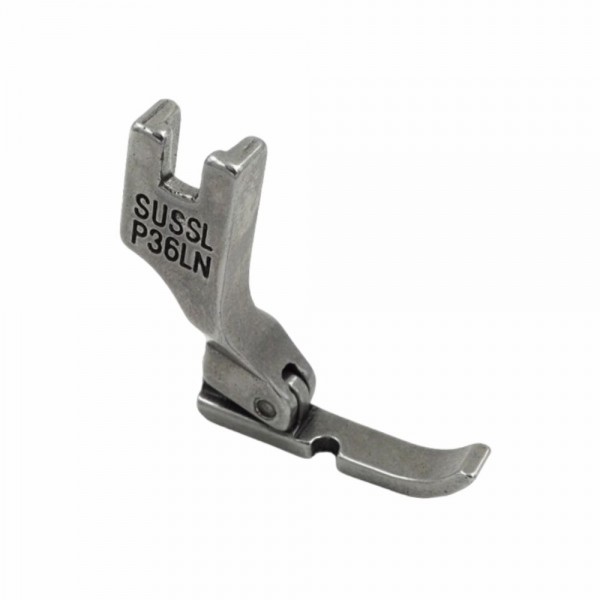 Лапка для промышленной швейной машины универсальная P36LN. Предназначена для вшивания молнии. Лапка однорожковая левая узкая. Ширина подошвы 5 мм.