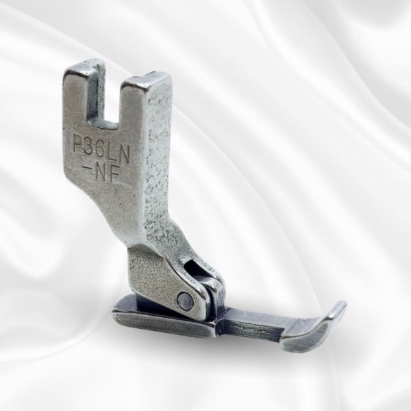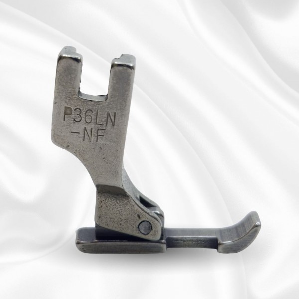 Лапка для промышленной швейной машины универсальная P36LN-NF. Предназначена для вшивания молнии на машинах с игольным продвижением. Лапка однорожковая левая узкая. Ширина подошвы 5 мм.