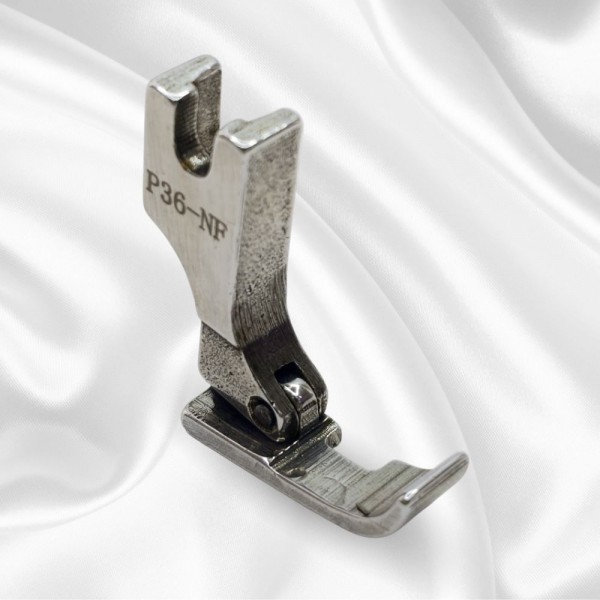 Лапка для промышленной швейной машины универсальная P36-NF. Предназначена для вшивания молнии на машинах с игольным продвижением. Однорожковая правая. Ширина подошвы 8 мм.