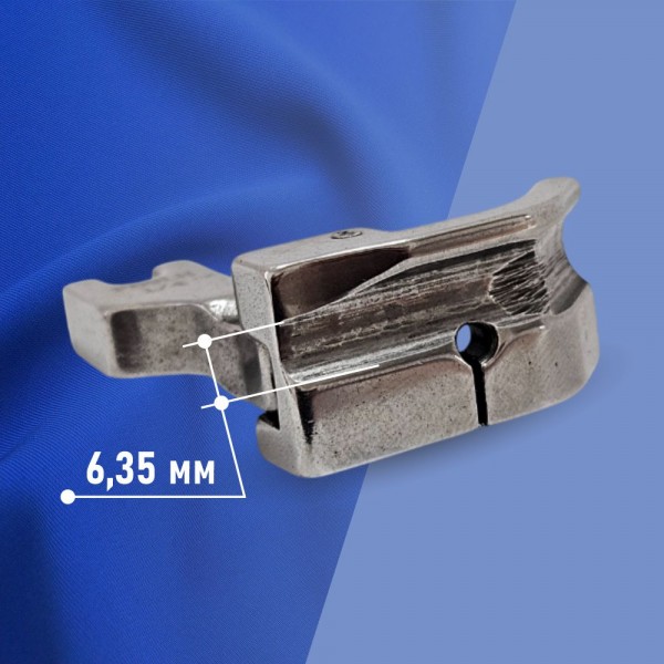Лапка P69LH 1/4 с жесткой. подпружиненной подошвой. используется для втачивания канта (кедера. шнура). диаметром 6.4 мм (1/4). желоб расположен слева от иглы. Предназначена для всех видов материалов.
