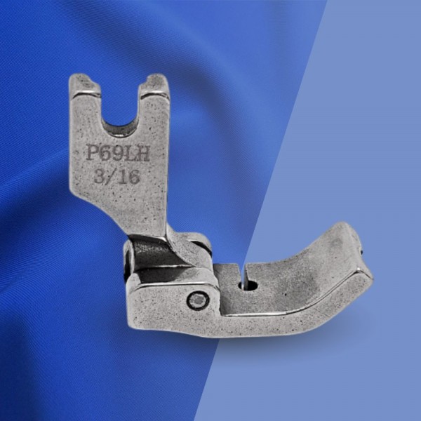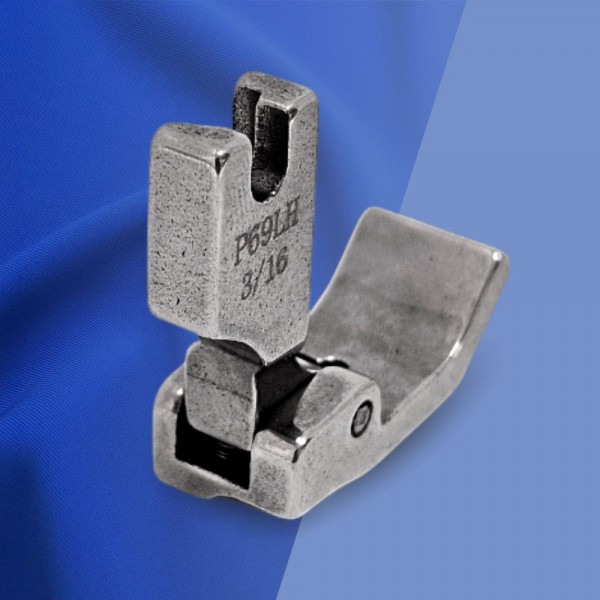 Лапка P69LH 3/16 с жесткой. подпружиненной подошвой. используется для втачивания канта (кедера. шнура). диаметром 4.8 мм (3/16). желоб расположен слева от иглы. Предназначена для всех видов материалов.