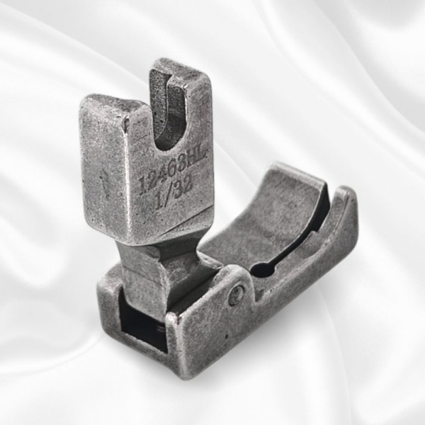 Лапка P810L 1/32 с левым фиксированным (жестким) бортиком для прямострочных промышленных швейных машин. Возможная ширина отделочной строчки 1/32" (0.8 мм).
