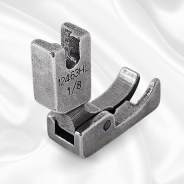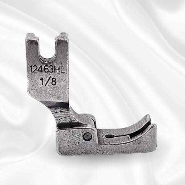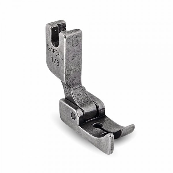 Лапка P812L 1/8 с левым фиксированным (жестким) бортиком для прямострочных промышленных швейных машин. Возможная ширина отделочной строчки 1/8" (3.2 мм).