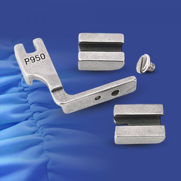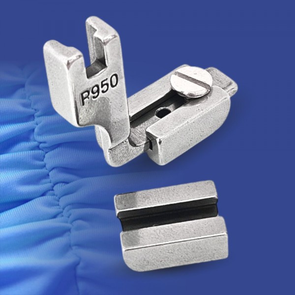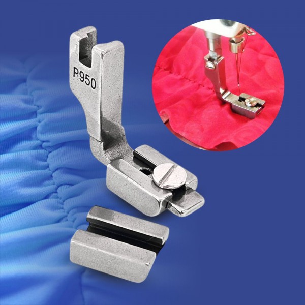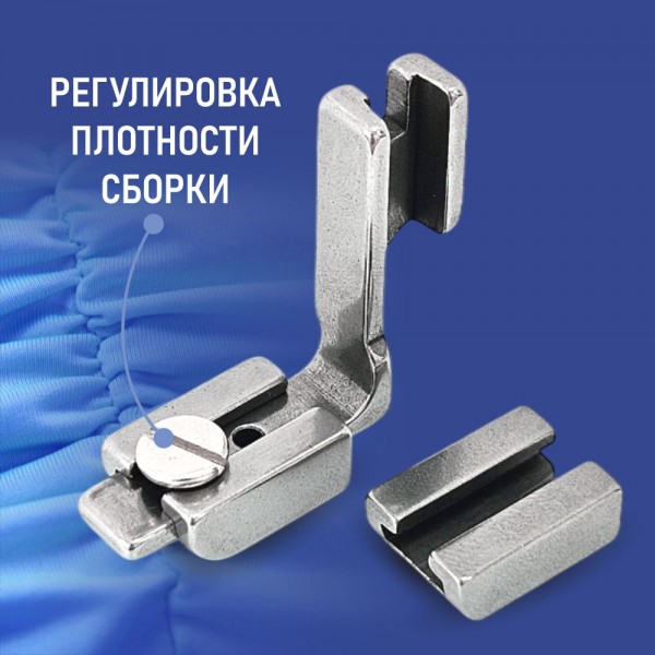 Лапка P950 со съемной платформой. перемещением или сменой которой регулируется величина сборки. Регулировка величины складок (присбаривания) достигается путем перемещения сдвижного сегмента по оси лапки - чем дальше сегмент от иглы. тем больше сборка. чем ближе к игле. тем сборка меньше. В комплекте 2 платформы на легкие (низкая платформа) и среднетяжелые ткани (высокая платформа). Для промышленных швейных машин с нижним продвижением ткани(одноигольных. прямострочных).