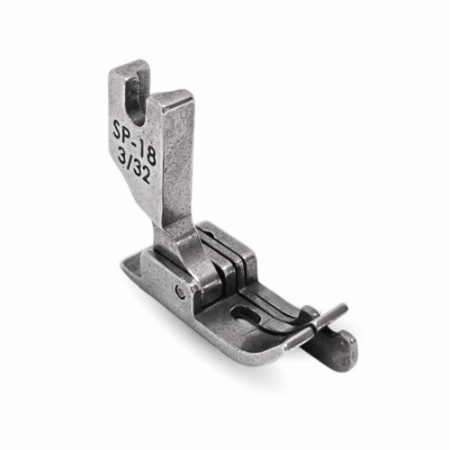 Лапка SP-18 для отделочных строчек с подпружиненным бортиком. Предназначена для всех видов материалов. как для тяжелых материалов. типа джинса. так и для легких трикотажных материалов. например кулирка. Устанавливаются на одноигольные прямострочные промышленные швейные машины с нижним продвижением.