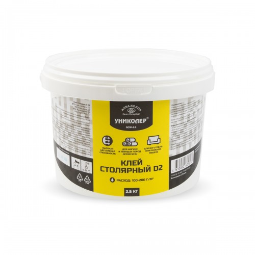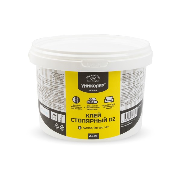 Столярный клей GCW-2.5 "УНИКОЛЕР" предназначен для столярных работ в сухих условиях. Отличается высокой адгезивной способностью, подходит для склеивания мягких и твёрдых пород древесины, не подвергающихся воздействию влаги. Применяется для изготовления и ремонта мебели, предметов интерьера из дерева, МДФ, ДСП, фиксирует фанеру и мебельные щиты. Внутренней отделки помещений: клейка пробковых панелей, паркета, деревянного шпона, ковролина и линолеума.