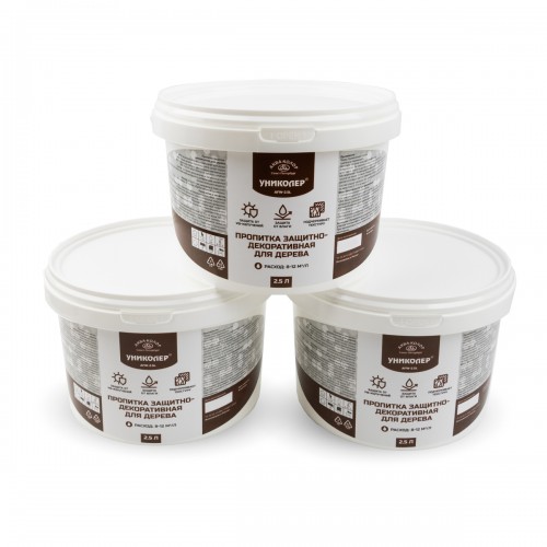 Акриловая защитно-декоративная пропитка для дерева AFW-2.5L "УНИКОЛЕР" применяется для внутренних и наружных работ. Наносится на поверхность строганой, пиленой и бревенчатой древесины, кроме напольных покрытий. Глубоко проникает, сохраняет и подчеркивает натуральный рисунок древесины. Образует полуматовое покрытие. Защищает древесину от воздействия УФ-излучения и атмосферной влаги.
