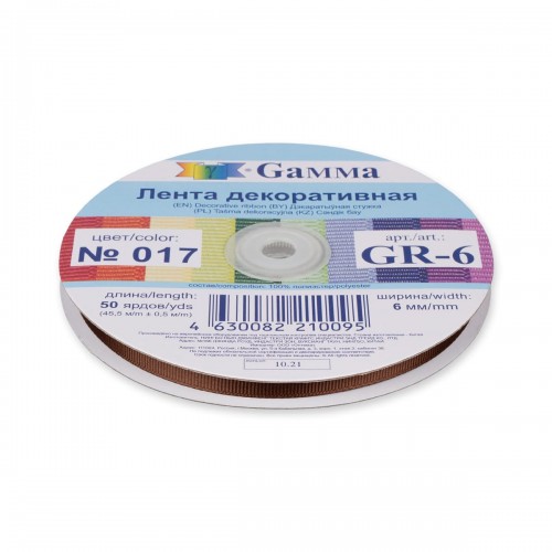 "Gamma" репсовая лента GR-06 6 мм 1/4 " 45.5 м №017 т.коричневый