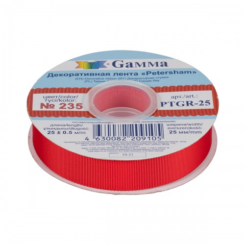 "Gamma" репсовая лента с зубчатым краем PTGR-25 25 мм 1 " 25 м №235 яр.красный