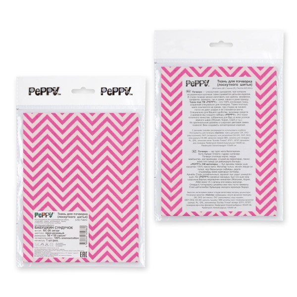 Ткань для пэчворка PEPPY БАБУШКИН СУНДУЧОК ФАСОВКА 50 x 55 см 140 г/кв.м ± 5 100\% хлопок БС-26 зигзаг ярко-розовый