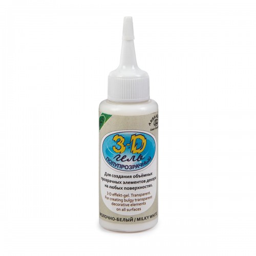 Акриловый гель 3D-эффект предназначен для формирования рельефного покрытия на стекле и любых других поверхностях. Гель наносится на поверхность кистью или мастихином, возможно использование через трафарет. После высыхания гель образует прочный, несмываемый водой прозрачный рельеф.