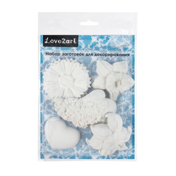 Заготовка для декорирования "Love2art" ВА-10 Набор заготовок для декорирования гипс 21 х 16 х 2 см 5 шт Цветы