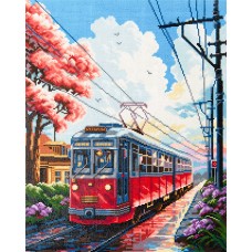 Кристальная (алмазная) мозаика "ФРЕЯ" ALPD-286 на подрамнике "Трамвай 40 х 50 см