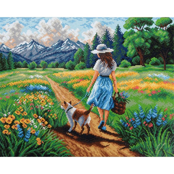 Кристальная (алмазная) мозаика "ФРЕЯ" ALPD-299 на подрамнике "Прогулка по полю 50 х 40 см