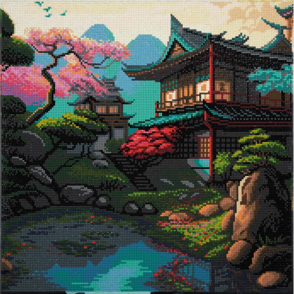 Кристальная (алмазная) мозаика "ФРЕЯ" ALPD-226 на подрамнике "Японский домик 40 х 40 см