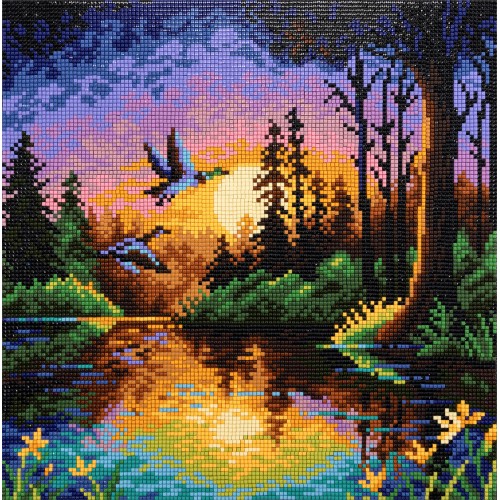 Кристальная (алмазная) мозаика "ФРЕЯ" ALPD-302 на подрамнике "Утки на закате 30 х 30 см