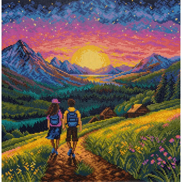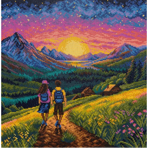 Кристальная (алмазная) мозаика "ФРЕЯ" ALPD-303 на подрамнике "Прогулка в горах 40 х 40 см