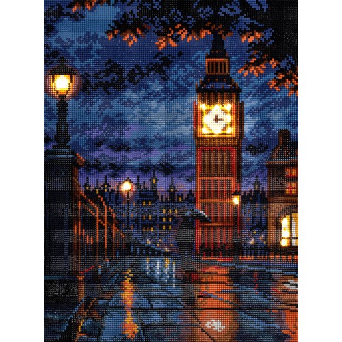 Кристальная (алмазная) мозаика "ФРЕЯ" ALDD-309 на подрамнике "Ночной Биг-Бен" (со светодиодами) 30 х 40 см