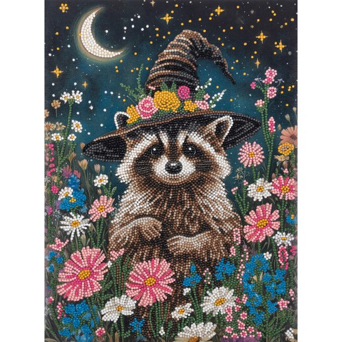 Кристальная (алмазная) мозаика "ФРЕЯ" ALPD-316 на подрамнике "Енот в цветах 30 х 40 см