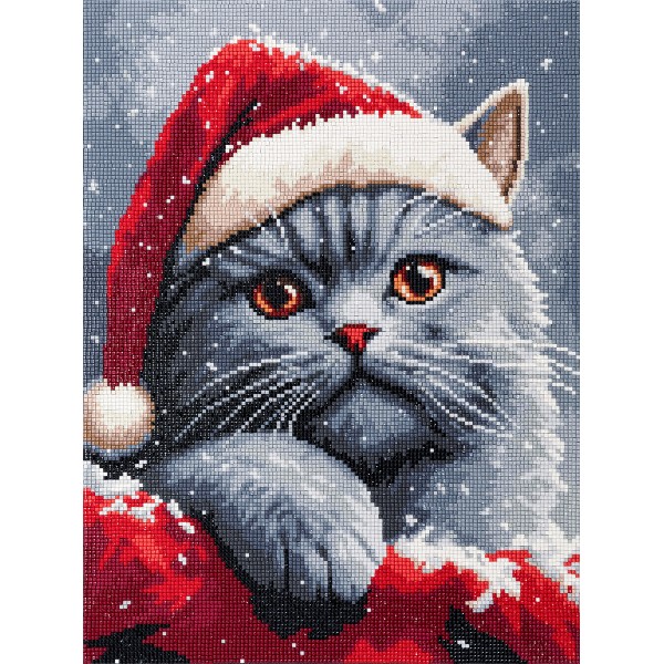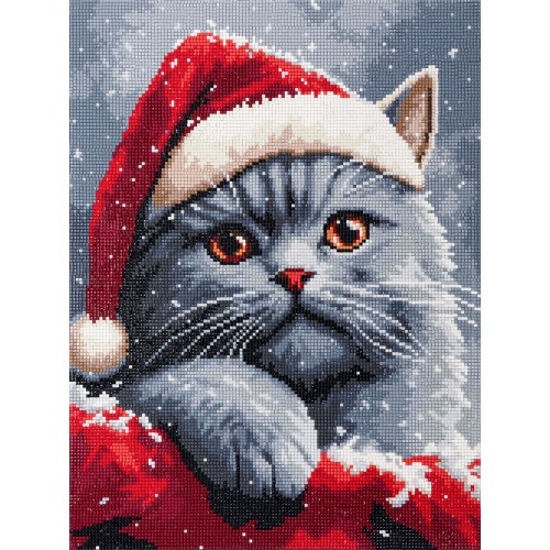 Кристальная (алмазная) мозаика "ФРЕЯ" ALPD-313 на подрамнике "Котик в шапке 30 х 40 см